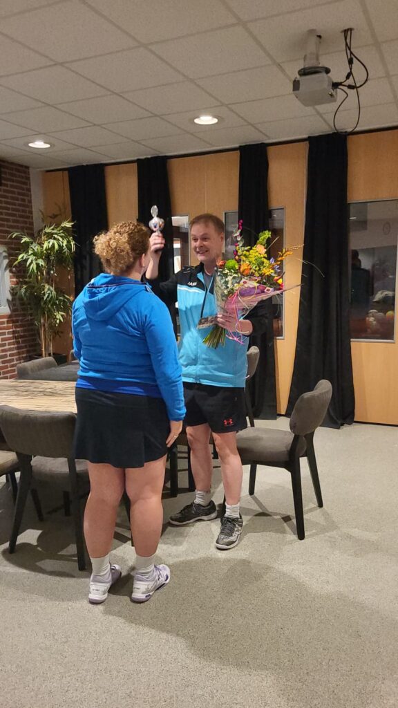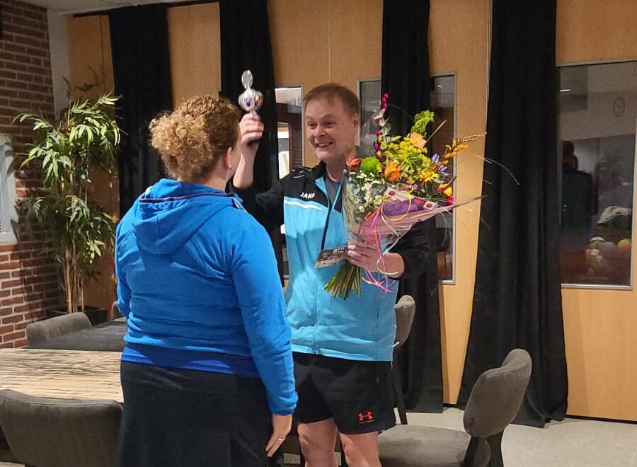 Hans viert deze week zijn 12,5 jarig jubileum als trainer bij Allotria! Dat laten we natuurlijk niet onopgemerkt voorbij gaan. Via video’s wensten onze leden hem al het goeds. Ook gaat Hans naar huis met een mooie bos bloemen, een klusbon en de ‘Beste-trainer-van-de-afgelopen-12,5-jaar-bij-bc-allotria prijs! Die gaat vast een mooi plekje krijgen 😊